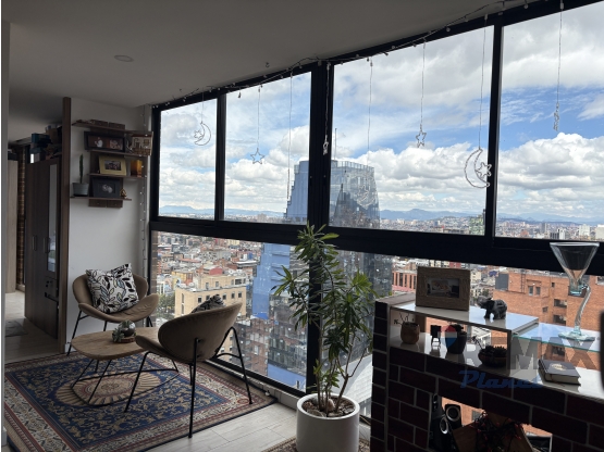 Apartamento en venta en Chapinero alto. son 61.68 mts piso 17 vista panoramica, muy luminado, comprende sala- comedor, cocina abierta con estufa de induccion,  zona de lavanderia independiente, baño social, son dos habitaciones cada una con baño, ademas parqueadero  cubierto e independiente  y deposito.  El conjunto tiene  recepcion con sala de espera, vigilancia 24 horas, planta  suplencia parcial,  tres ascensores, oficina de  administracion, diez  parqueaderos de visitas, bicicletero,  completas  areas sociales,  en diferentes pisos, en segundo piso  gimnasio y turco,  piso siete zona de coworking,  piso ocho, zona de café y zona de yoga, y en el piso diecinueva   terraza con bbq,  son 180 apartamentos en total.  Cerca a Hospital Militar, Universidad Manuela Beltra, Universidad de la Salle, Hospital San Ignacio.  Las vías de acceso son la av Circunvalar, calle 51, cra 3, calle 48, cra 13.