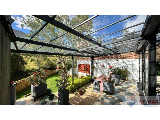 Casa de 206 m2 construidos, con terraza y zona verde de aproximadamente 90 m2, en primer nivel porton electrico para dos vehiculos y bicicletas o cuatrimoto, una habitacion y/o oficina con baño completo, un amplio espacio con escalera a segundo nivel, cocina abierta con isla, comedor y sala, en segundo nivel 3 habitaciones amplias con closet y baño privado en cada habitacion y un tercer nivel con mirador y espacio para descanso.